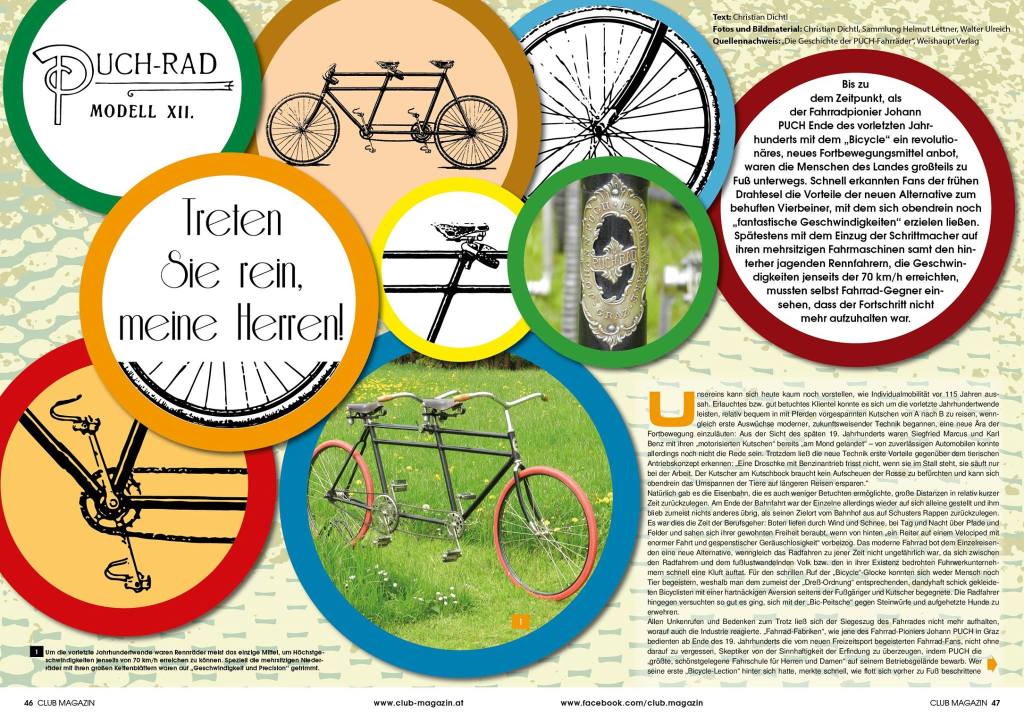 Im Frühjahr 2016 portraitierte Christian Dichtl in seinem Club Magazin für PUCH Enthusiasten unter dem Titel „Treten Sie rein, meine Herren!“ ein von mir in Stand gesetztes, ganz besonderes Rad.
