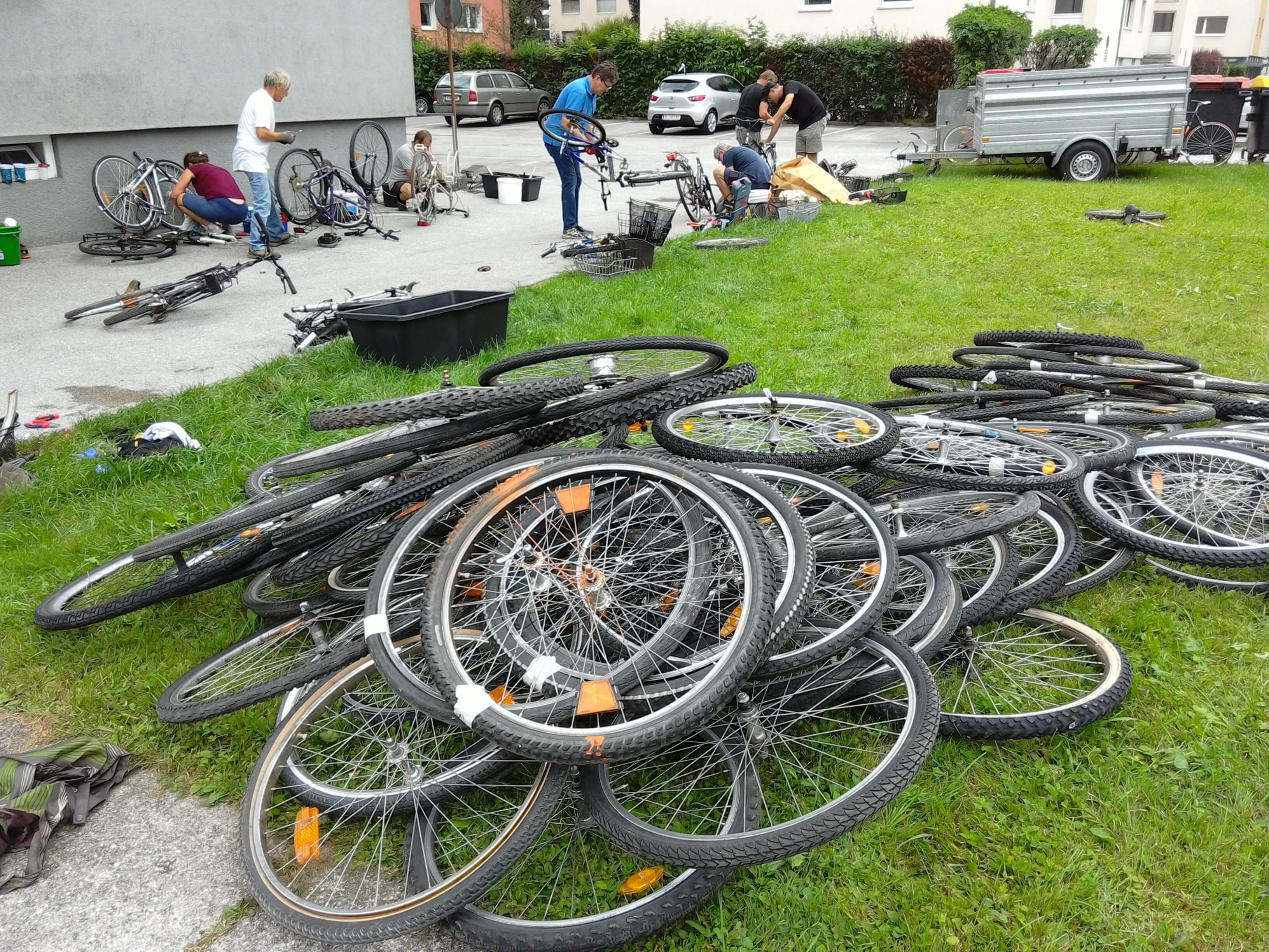 Bei der Aktion im August 2020 zerlegten rund 35 freiwillige Helfer und Helferinnen rund 400 Räder, die u.a. bei der Flurbereinigung in Salzburg angefallen waren. Das Zerlegen der Räder ermöglichte den Transport via Container. Gleichzeitig wurden nicht mehr gebrauchsfähige Räder entsorgt. Da die Räder in einer stillgelegten Unterführung mitten in einem Siedlungsgebiet gelagert waren, erforderte das Demontieren und Beladen sogar eine Straßensperre.