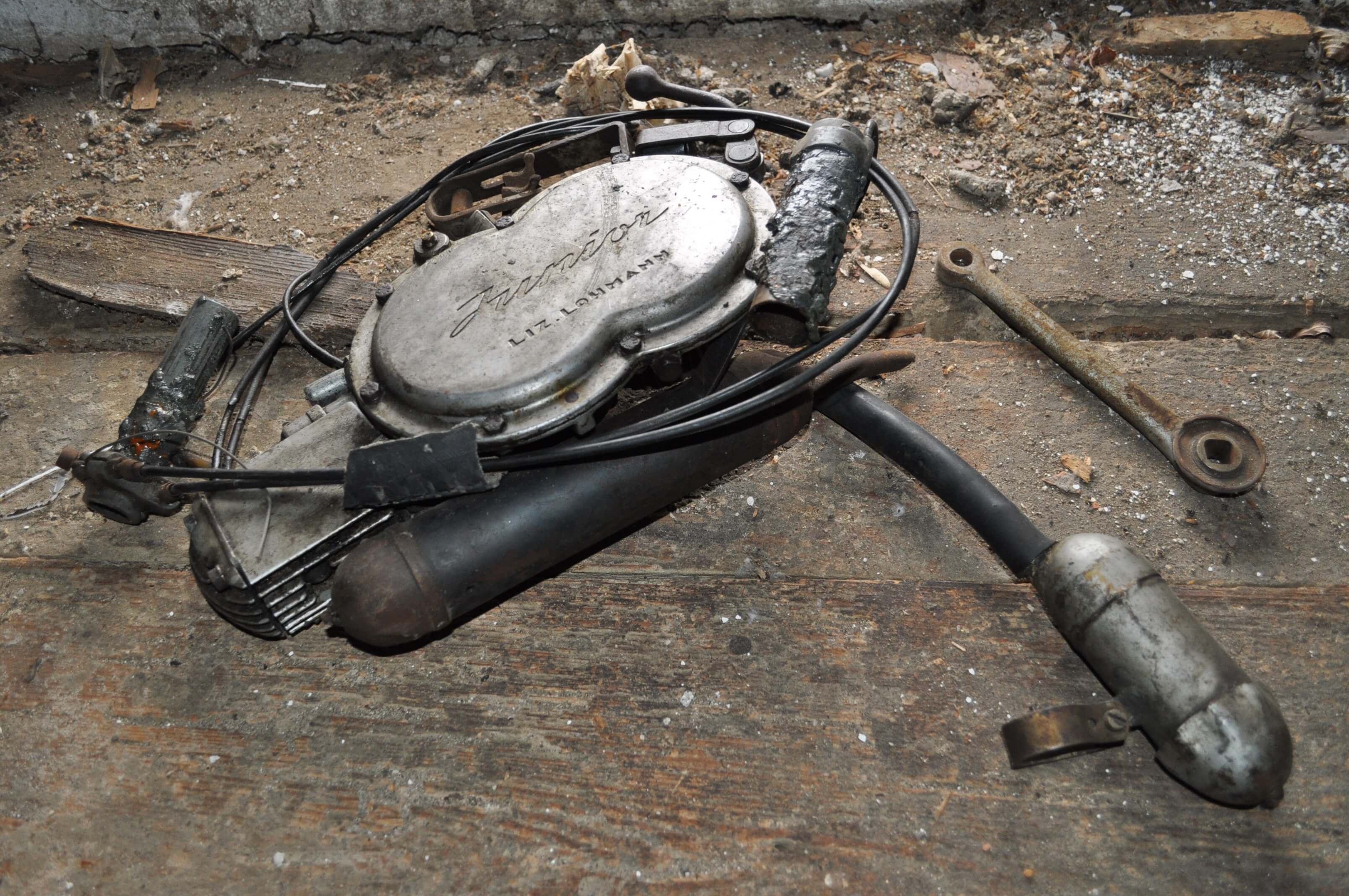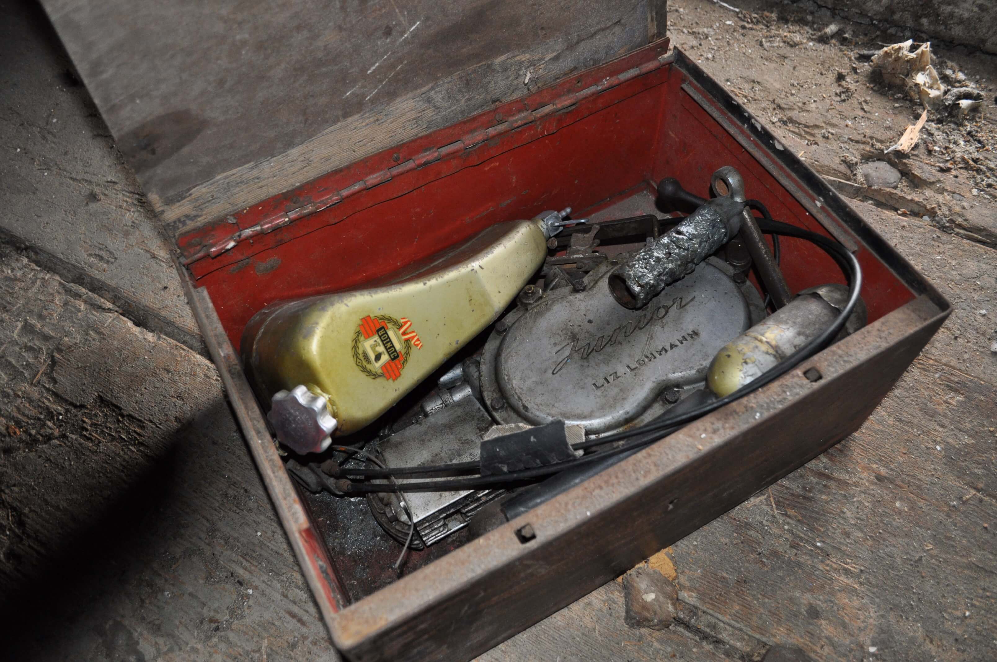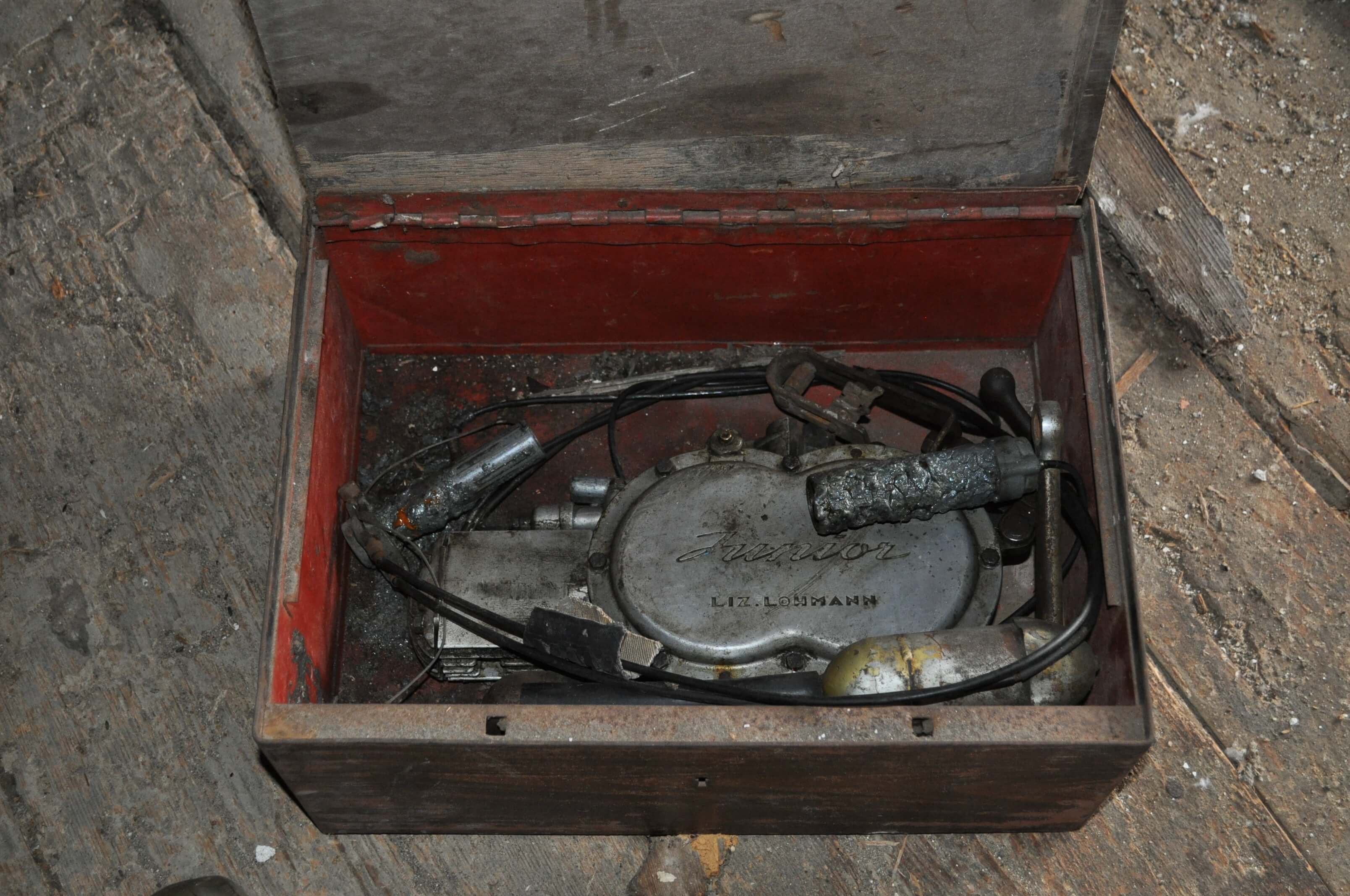 Im Zuge einer Haushaltsauflösung, bei der ich meinem Freund Ernst half, fand ich dieses Gusto-Stückerl auf dem Dachboden des Hauses. Der Lohmann-Hilfsmotor ist rund 70 Jahre alt und als absolute Rarität einzustufen. Dementsprechend groß war meine Freude über den Zufallsfund.