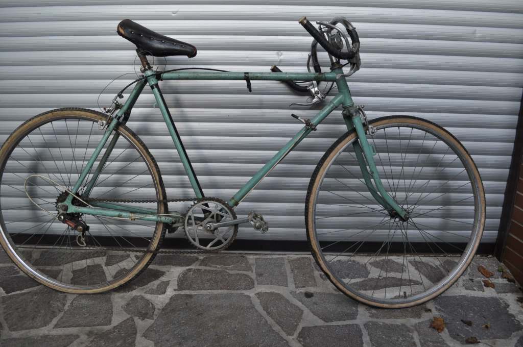 In seiner Jugend, die auch schon ein paar Tage zurückliegt, hatte sich Rainer seinen Traum vom eigenen Rennrad in Form eines umgebauten Waffenrades ermöglicht. Dabei herausgekommen ist folgende Eigenkreation, die mir in eher desolatem Zustand mit der Bitte um Reanimation übergeben wurde:
