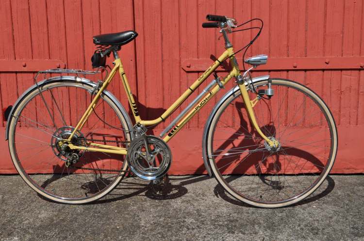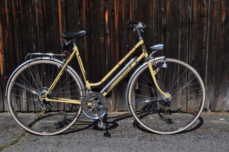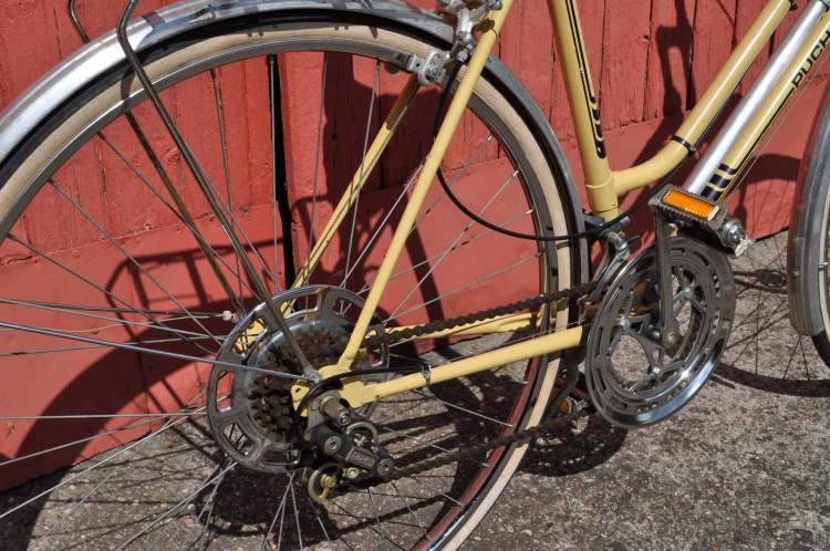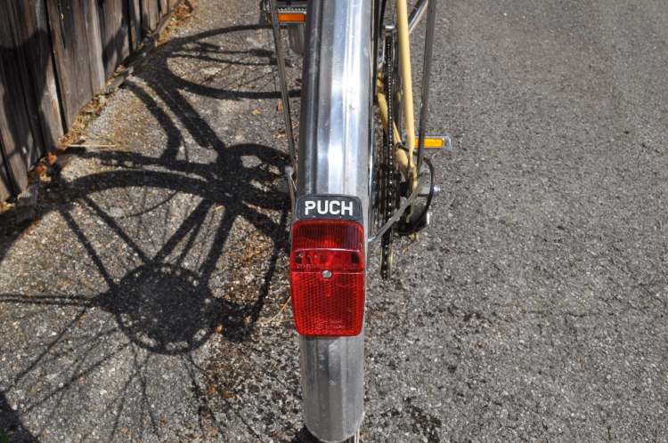 In der Garage eines bereits zum Abbruch freigegebenen Hauses stieß meine Tochter kürzlich auf ein Puch Clubman Damenrad, das wohl noch nicht viele Ausfahrten erlebt haben dürfte. Das erkannte mein fachmännisches Auge daran, dass an keinem der Verschleißteile nennenswerte Abnützungsspuren zu sehen sind. Die Farbgebung des Rades lässt auf die wilden 70er-Jahre schließen. Heute ließe sich ein Rad mit einer solchen Lackierung bestenfalls als Vintage verkaufen.