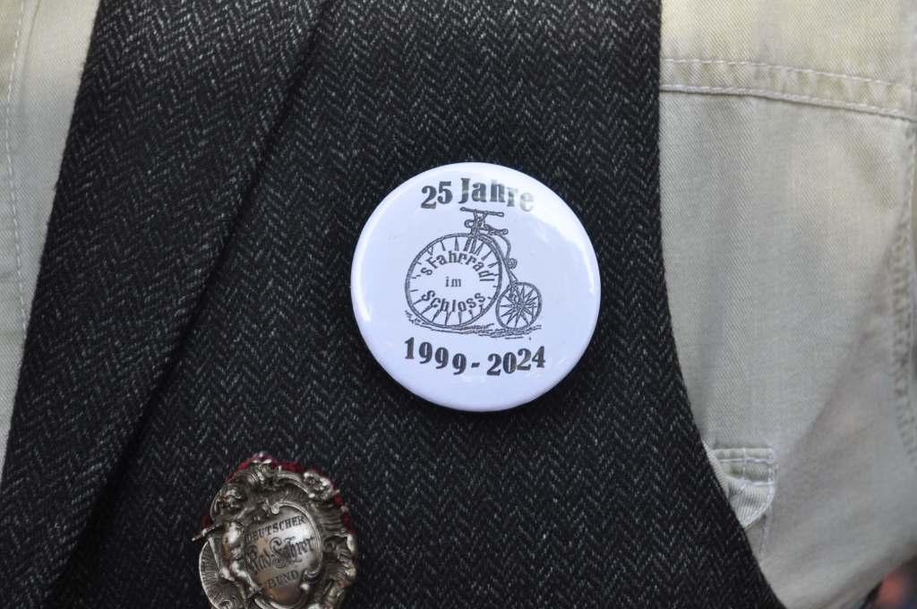 Wirklich beachtlich war, welch weiten Weg manche Radl-Freund:innen in Kauf genommen hatten, um mit Fritz zu feiern. Alle, die am 24. und 25.8. mit dabei waren, haben zu Erinnerung einen Anstecker bekommen, den ich Fritz anfertigen hab lassen und mit dem ich ihn – erfolgreich – überrascht habe.