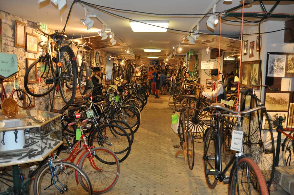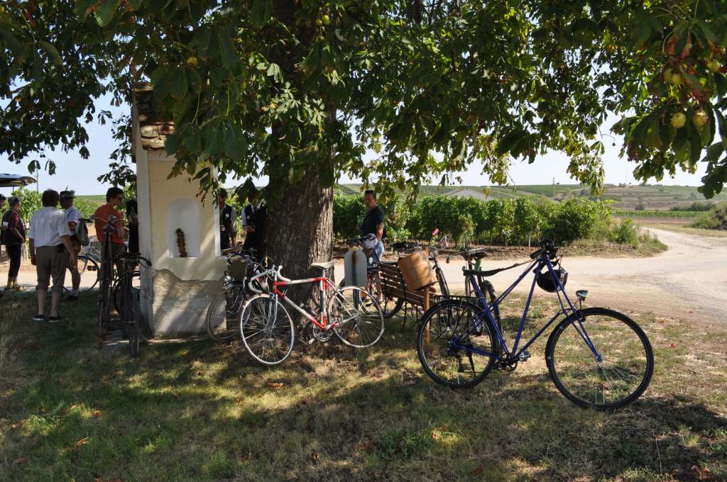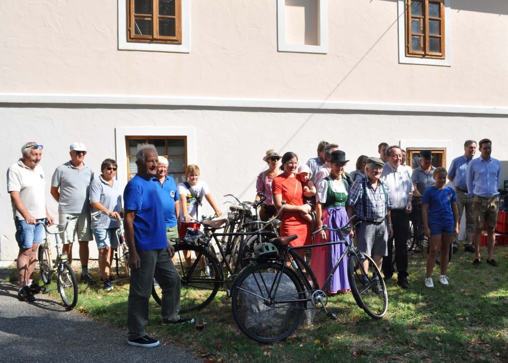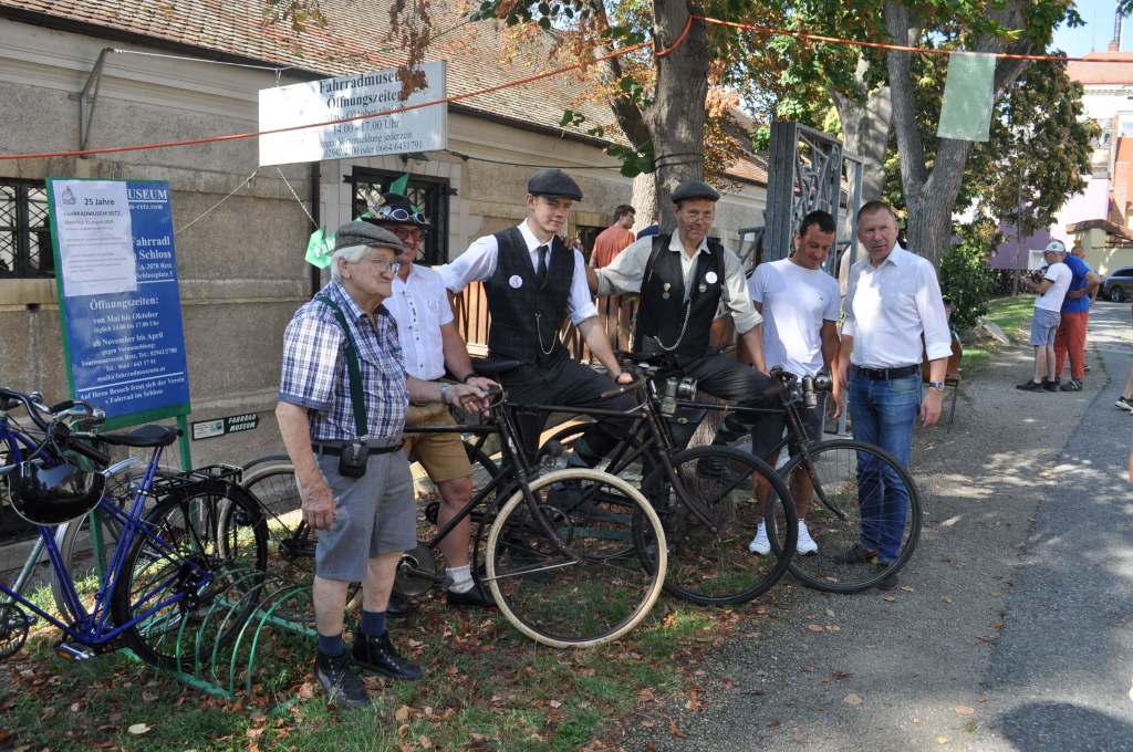 Am Samstag starteten wir beim Museum zu einer Ausfahrt mit großteils historischen Rädern rund um Retz. Die ausgeschilderte Route führte uns über Straßen und Güterweg, aber vor allem durch die üppigen Weinberge. Weil es so wie den ganzen Sommer auch an diesem Wochenende drückend heiß war, freuten wir uns alle sehr über den Schatten bei der Labstation. Bis wir dann beim Museum, unserer Endstation, eintrafen, waren wir alle bereits wieder ausreichend durstig und stärkten uns mit Kaffee und Kuchen.