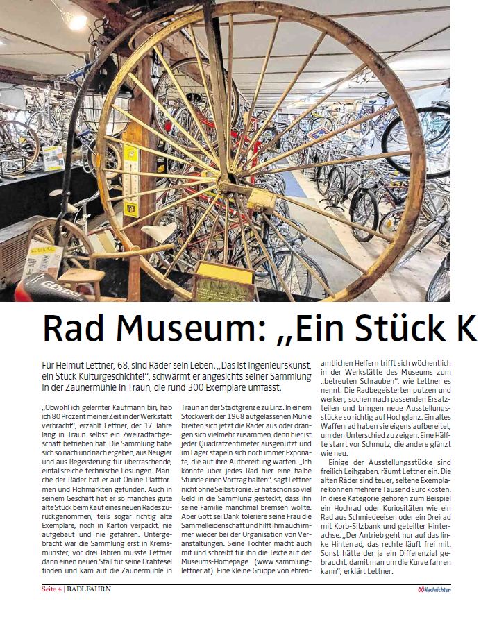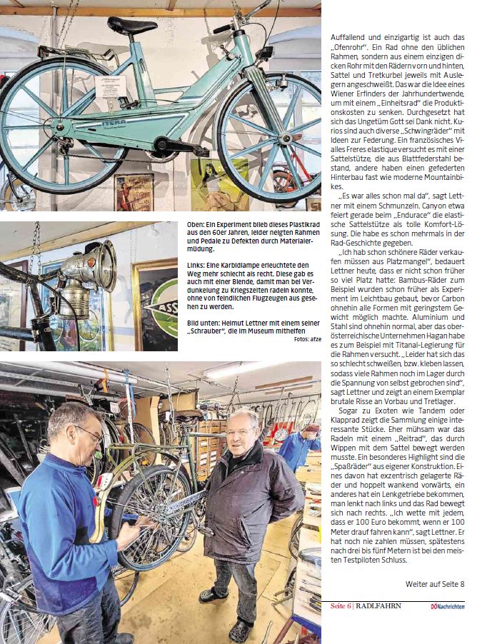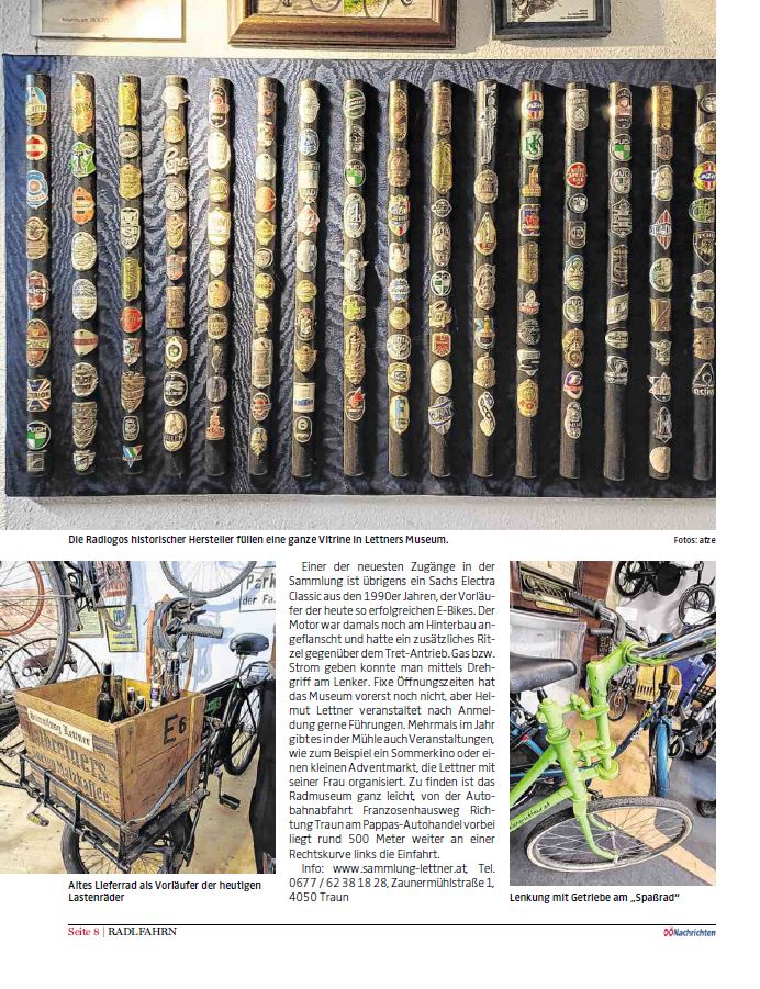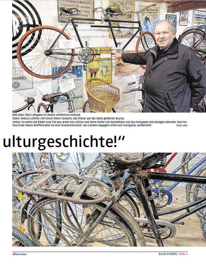 In den letzten Wochen durfte ich einige Medienvertreter:innen in der Zaunermühle begrüßen und durch meine Rad-Sammlung führen. Die daraus entstandenen Berichte sind zum Großteil noch online verfügbar und hier in chronologischer Reihenfolge gelistet: