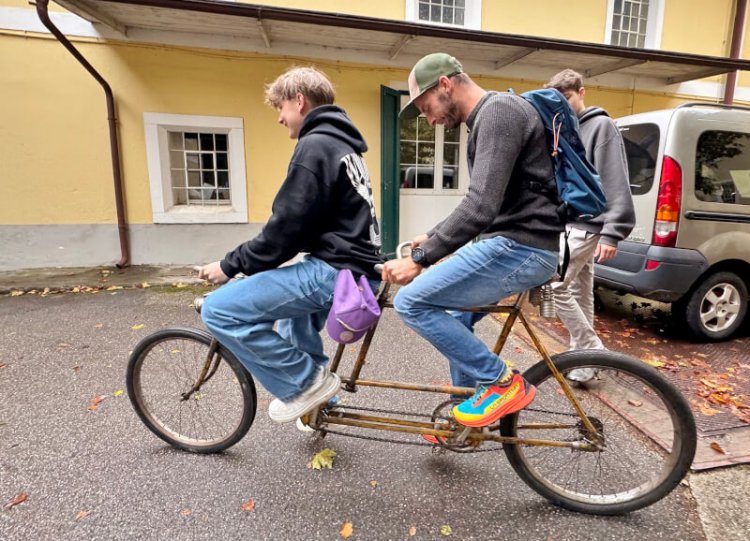 Sie waren sogar so interessiert, dass sie nachfragten, ob sie einige der Räder ausprobieren dürfen. Dafür war ich selbstverständlich gleich zu haben und nachdem die Jugendlichen die Räder mit großen Motivation vor die Mühle getragen hatten, konnte das große Testfahren losgehen.
